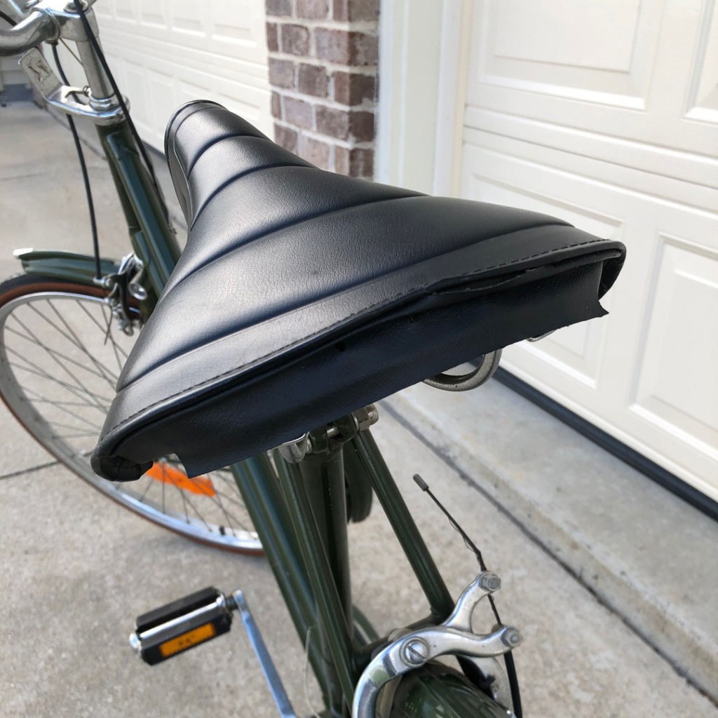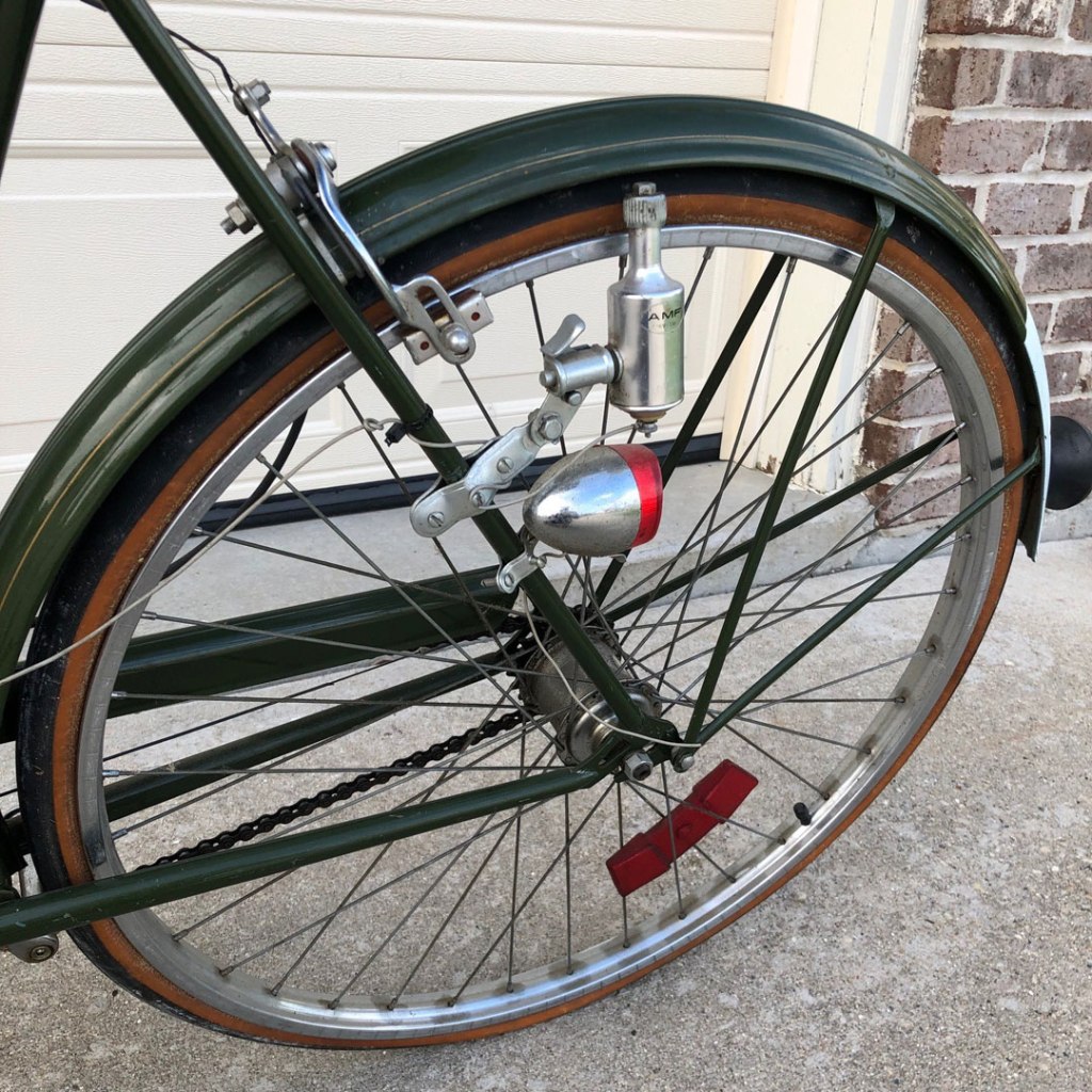 I think it is pretty much the same bike, except for the frame with the step through top tube. I think she does have her original saddle which may be a Brooks vinyl. Other than the bad tires I haven’t found much wrong with this one yet. The chrome will need some cleaning up and a little rust on the fenders. I’ll be slowly running through everything to refresh it. Here are some pics of this beautiful bike: