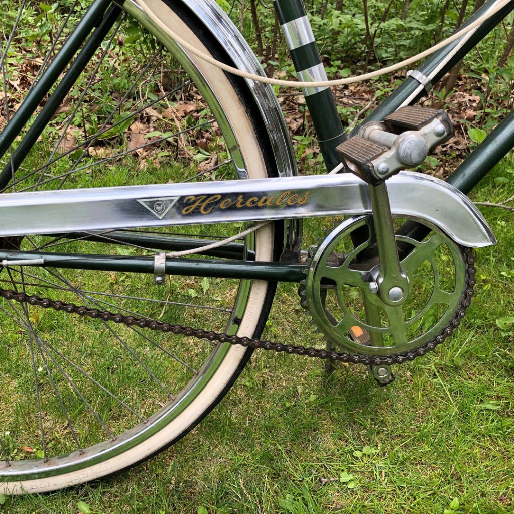 This is my friend Glen’s ladies Hercules bike we believe is a 1971 based on the Sturmey Archer 3 speed hub.