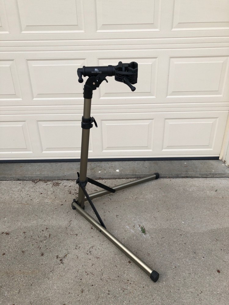 One of the first tools I bought when I decided I was going to do most my bike repairs was a stand. I didn’t want to go super cheap, but I knew I wasn’t going real expensive either. After searching around and reading reviews I landed on the Bikehand repair stand. Here are some pics of mine: