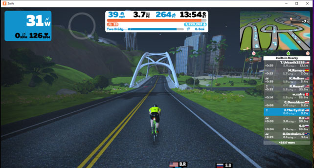 So, you live in a cold weather area and its winter, what is a cyclist to do? Well, I have a great answer for you, start Zwifting! Now you might be asking what the heck is that? It’s a riding video game where you use an indoor trainer. With a laptop or tablet you connect to a smart trainer and ride around some amazing virtual courses. Way better than any other indoor cycling experience I know of. Plus, you gain levels and earn different bikes and gear like any other video game. You can even virtually meet up with your friends and go for a ride. If you don’t have friends, you can explore the courses by yourself or follow one of the pace setters. I’ve been doing this for a few years now. It can really be a lot of fun. Here are some highlights: