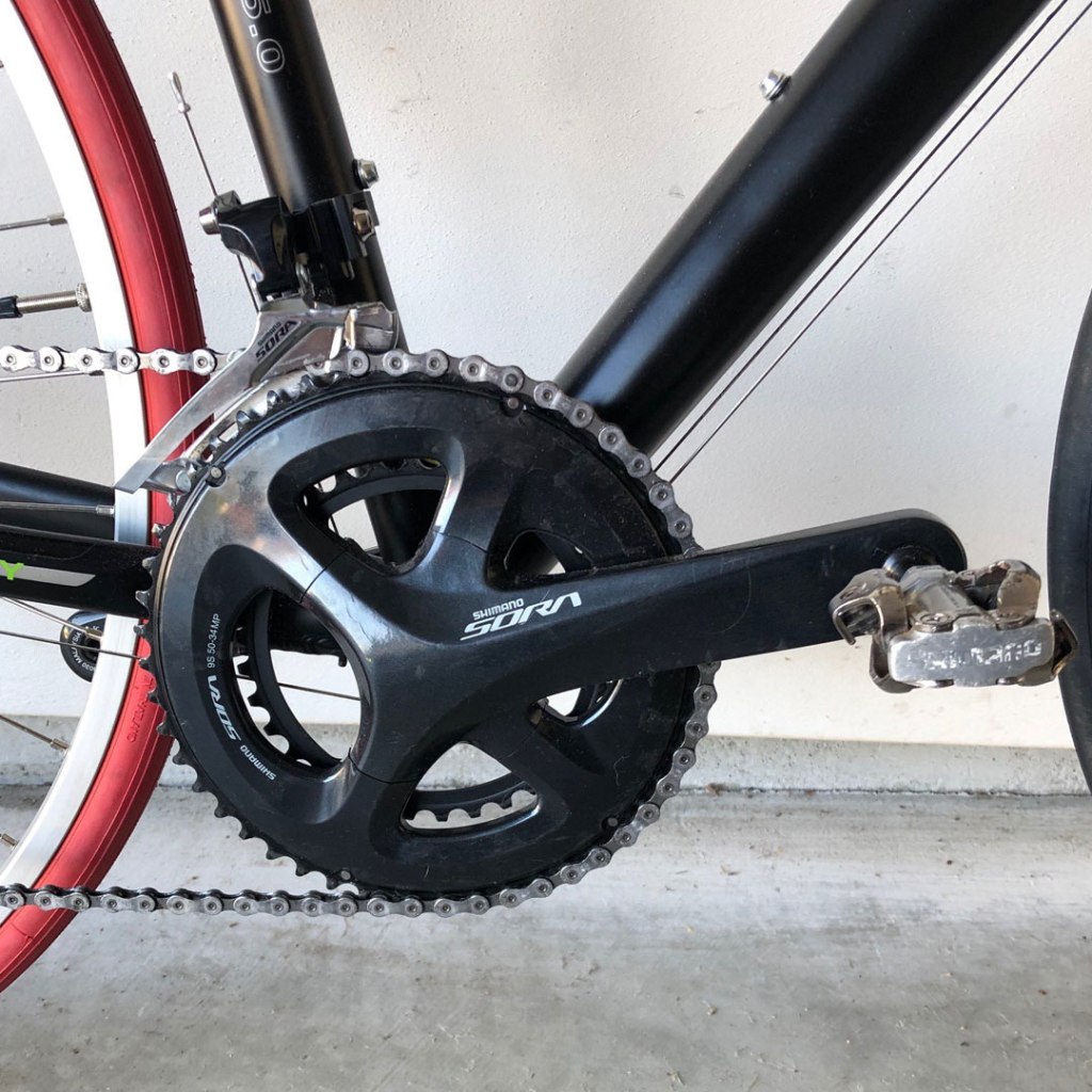Shimano Sora Shifters, Crankset, Cassette, Chain, and Derailleurs