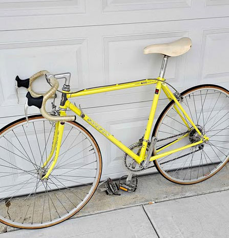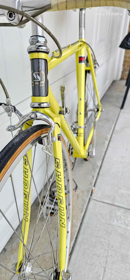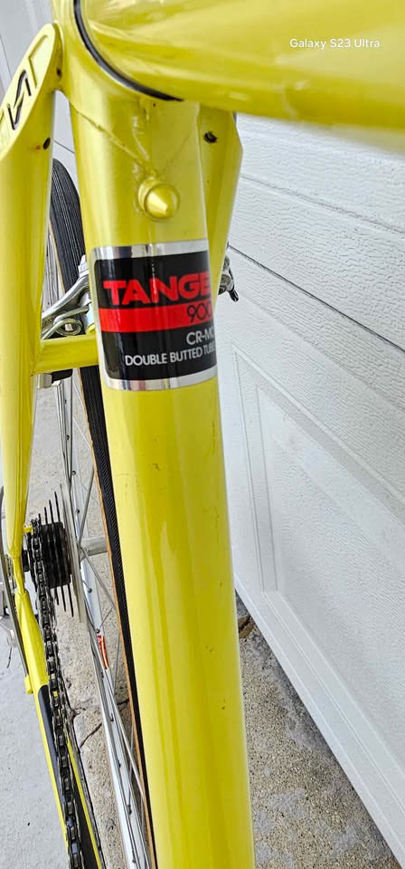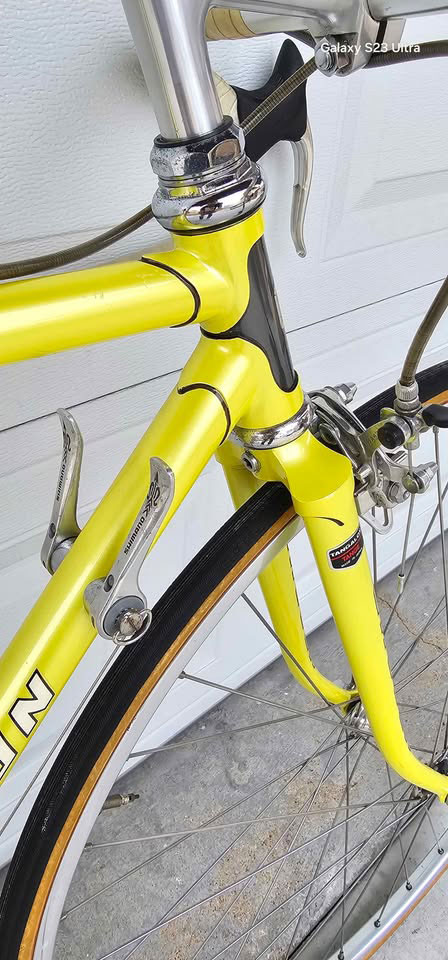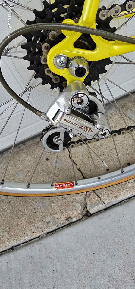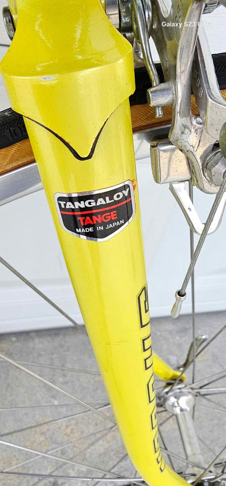 I don’t know the exact year of this beautiful bike, but it is probably late 80s based on the components. Really love the yellow/green, chartreuse color of this bike. Bike is all Tange steel with the rare and great looking Shimano Golden Arrow components. Here are some more images: