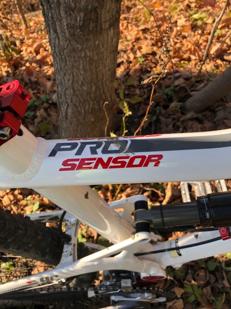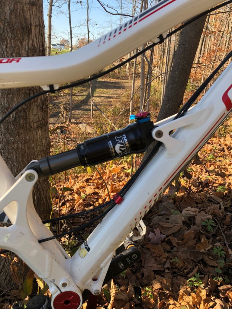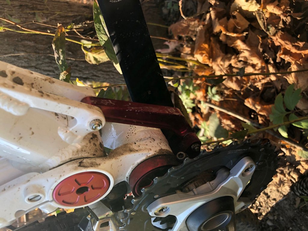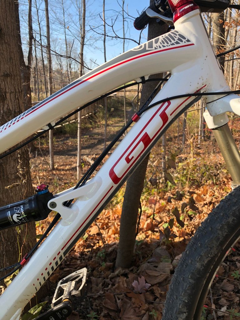 This is a really great looking and capable mountain bike. I really like a white bike with red and this one combines them really well. I love all the red accents like the hubs, skewers, headset, seat clamp, stem… Have a look: