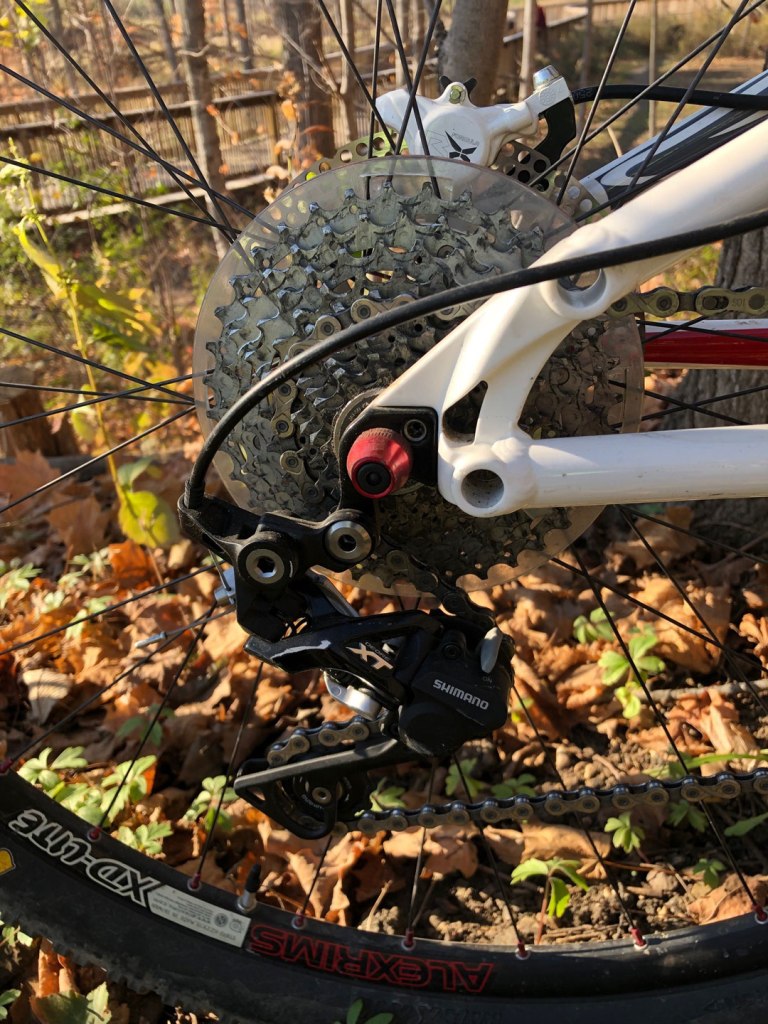 Drivetrain: Shimano SLX crank, Shimano SLX front derailleur, Shimano Deore XT rear derailleur, and Shimano SLX 11-36 10 speed cassette.