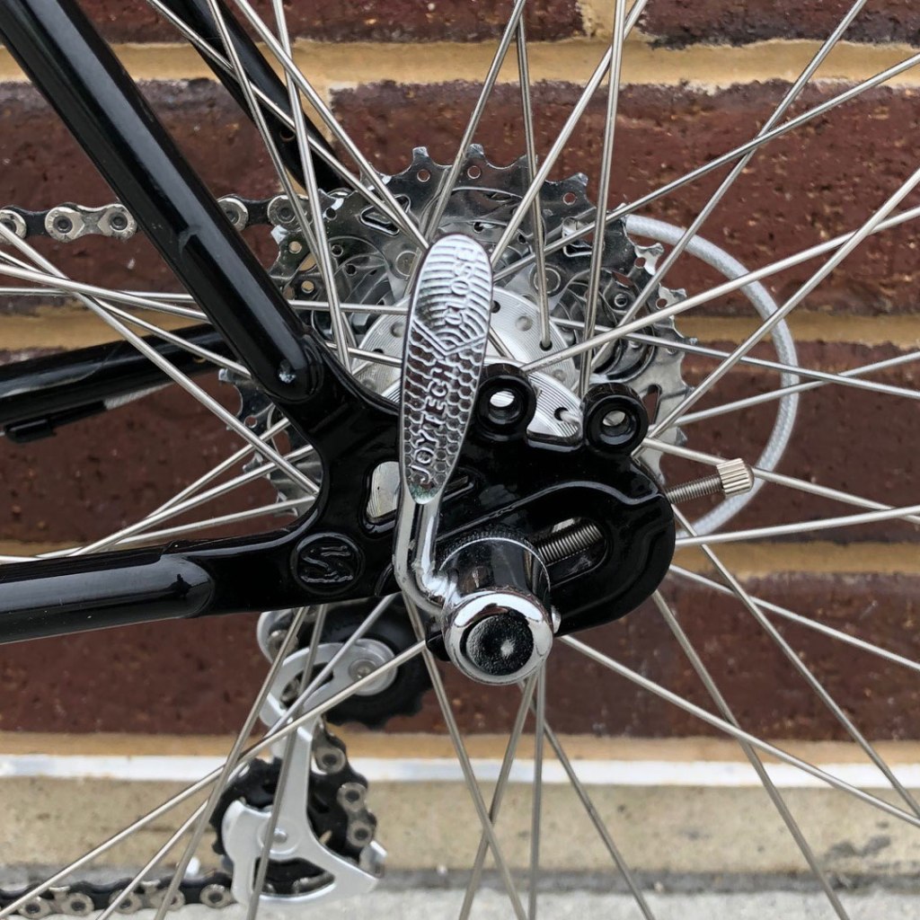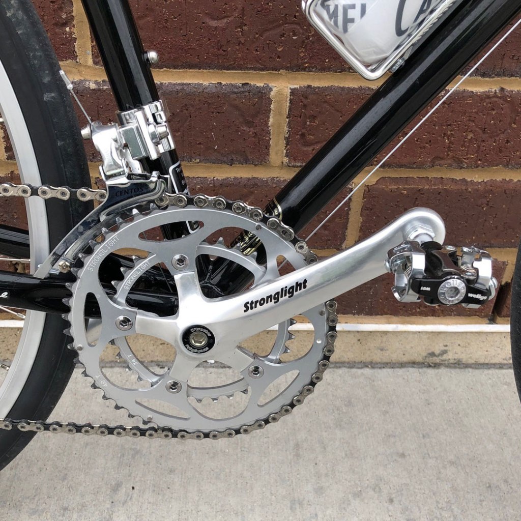 I’m really happy with my attempt at a vintage-look. All the silver parts look great, and I think really go well with the frame. The Stronglight crankset looks like it could be out of the 70s, so it’s perfect. My original plan was a silver stem, but I kinda like how the black stem looks with the silver bars. What do you think?