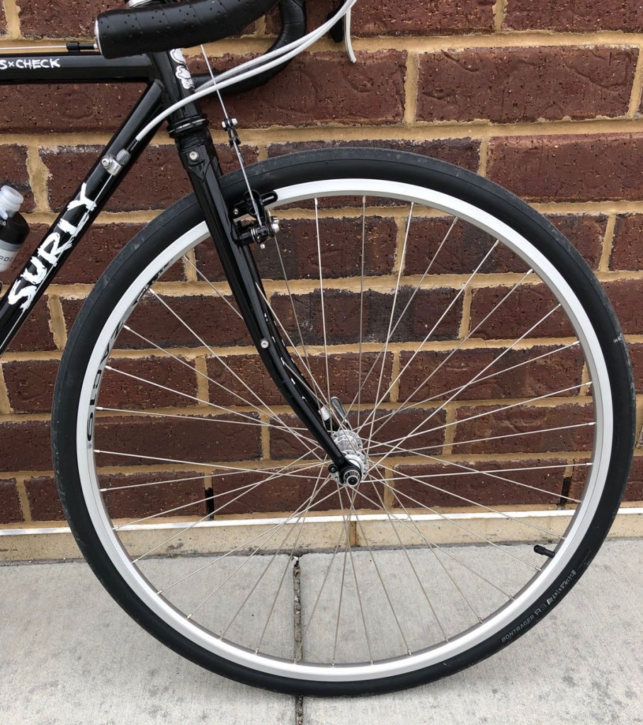 Really enjoying this bike. Because of this I already have some upgrade plans. Some to lighten it a bit, and others to work more on the look. I’m gonna go out on a limb here and say this is the best-looking vintage-look Surly Cross Check built in Wisconsin by an amateur mechanic with a Microshift drivetrain. Stay tuned for updates.