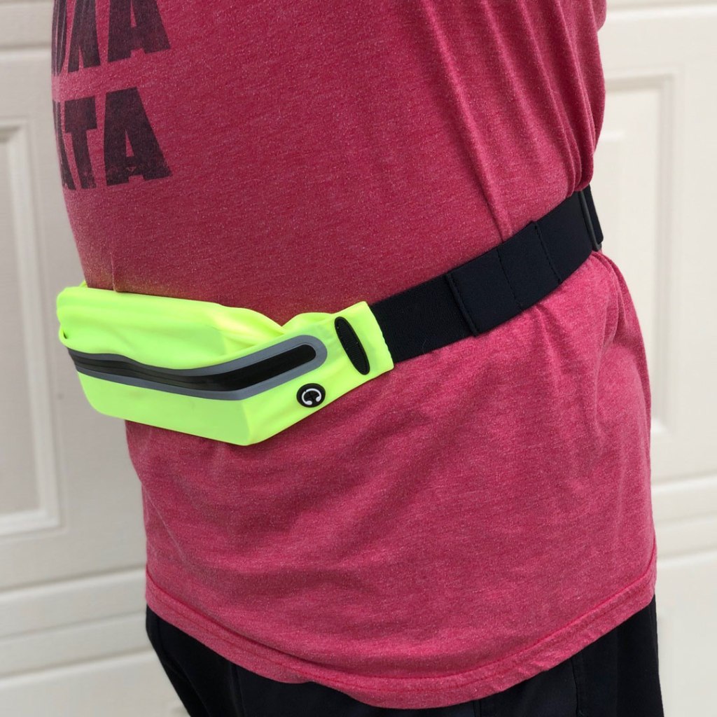 I have something similar for running, but it has an essential feature yours lacks – a water bottle holder and specially shaped water bottle to fit in said holder.